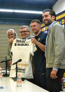 Con la presencia del Dr. Miguel Mejía Barón vicepresidente deportivo de la UNAM, Eduardo Saracho Dir. de Estrategia Deportiva, dr. Luis Raúl González Pérez, presidente del club UNAM, hicieron la presentación oficial del jugador medio campista Aarón Ramsey.
