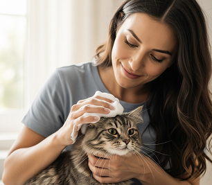 Iniciar con pequeñas cantidades: La primera vez se tiene que aplicar una cantidad muy pequeña del producto en las manos y frotar suavemente una zona pequeña del pelaje del gato, como la espalda, que es una de las áreas menos sensibles.