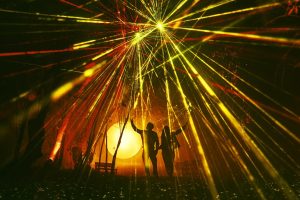 Al Atardecer: En esta zona inmersiva, un juego de luces y sombras aparecen inspirados en los atardeceres de la naturaleza. Al caminar por esta instalación, los visitantes se ven envueltos en diferentes colores que los convierten en siluetas en medio del paisaje nocturno.